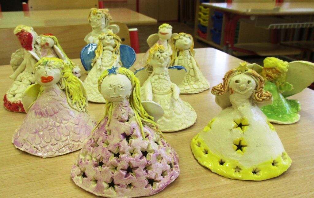Starší předškoláci a mladší školáci si již mohou vyzkoušet modelování jednoduchých tvarů, vytváření malých nádobek či figurek a zapojit se do glazování. Každý dokončený výrobek jim přináší radost a pocit úspěchu, což posiluje jejich sebedůvěru.