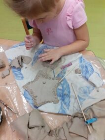 Pro malé děti je také velmi důležitý tlak a stiskání hlíny, což rozvíjí sílu prstů a svalů v rukou. Stisknutí nebo stlačování materiálu dětem pomáhá učit se kontrolovat sílu, což je zásadní pro rozvoj jemné motoriky. Naopak jemné detaily, jako je vyhlazování povrchu nebo vytváření malých tvarů, přispívají k rozvoji preciznosti a schopnosti se soustředit na detaily.